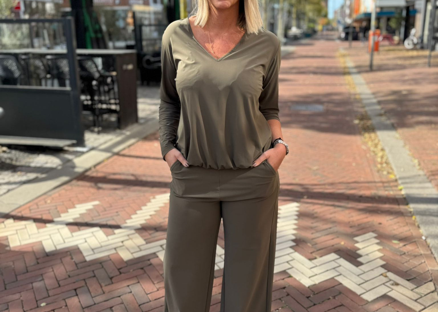 STUDIO ANNELOES - LEXIE BONDED TROUSERS NEW ARMY