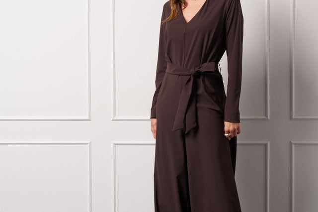 De Odessa jumpsuit van Studio Anneloes in Espresso is het ultieme mix-item: vrouwelijk, comfortabel en moeiteloos stijlvol. De combinatie van Heavy en Medium Travelstof geeft deze jumpsuit een elegante flow, terwijl de wijde pijpen en V-hals zorgen voor een flatterend silhouet. Een eyecatcher voor elke gelegenheid.