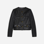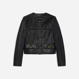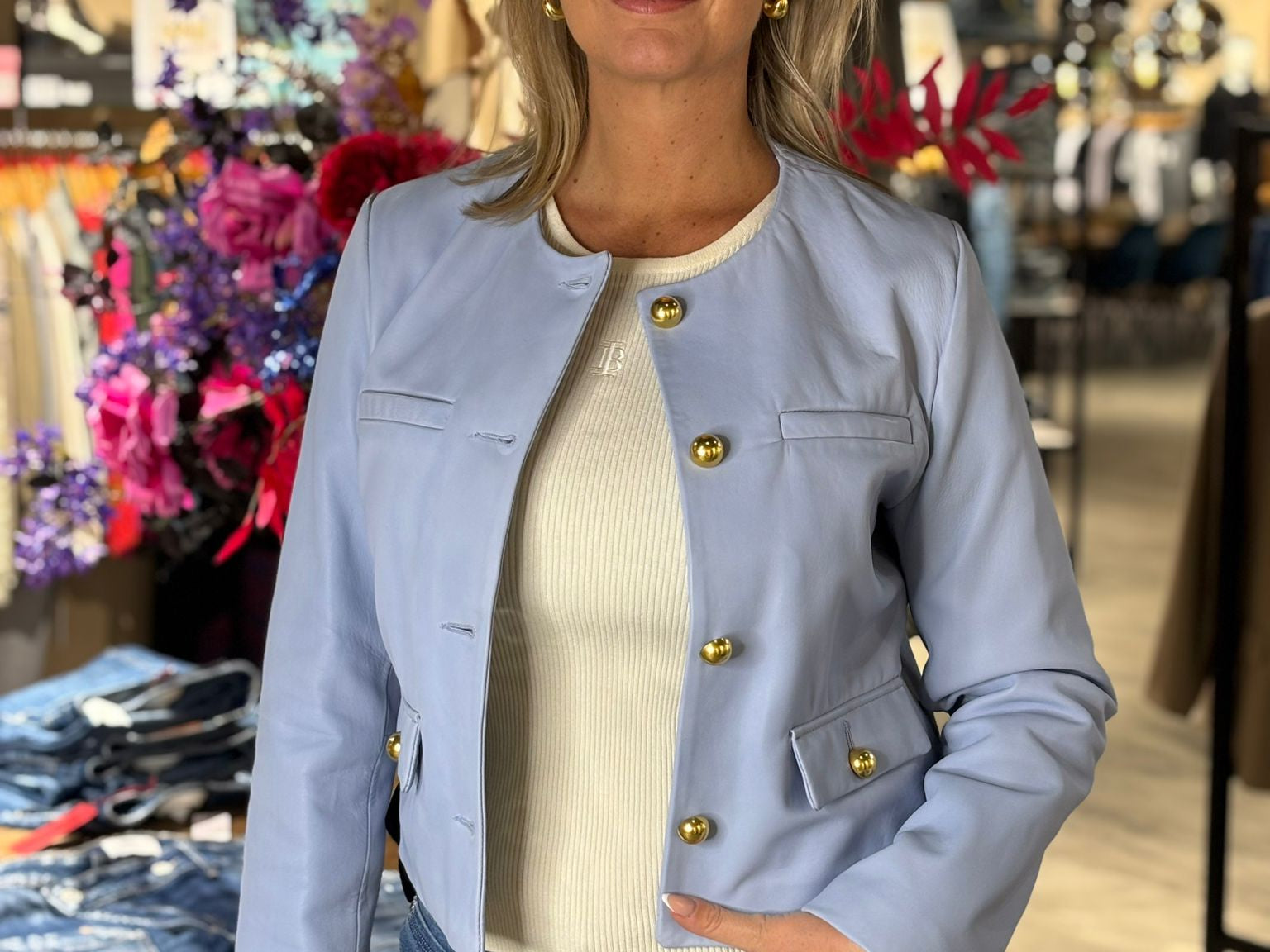 Prachtig leren jasje in Chanel stijl. Tijdloos en zeer stijlvol zijn de kenmerken van dit leren  jasje.