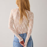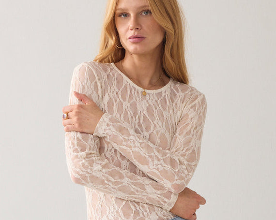 Longsleeve van zacht, rekbaar kant met een aansluitende pasvorm. De top is ideaal als basislaag onder blouses, truien of jasjes.