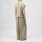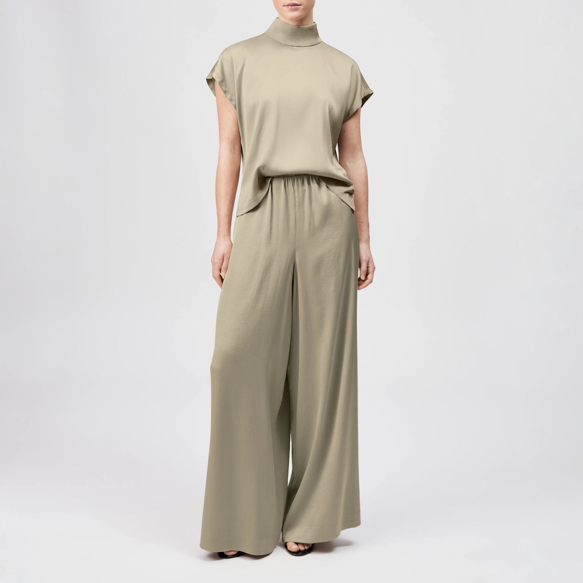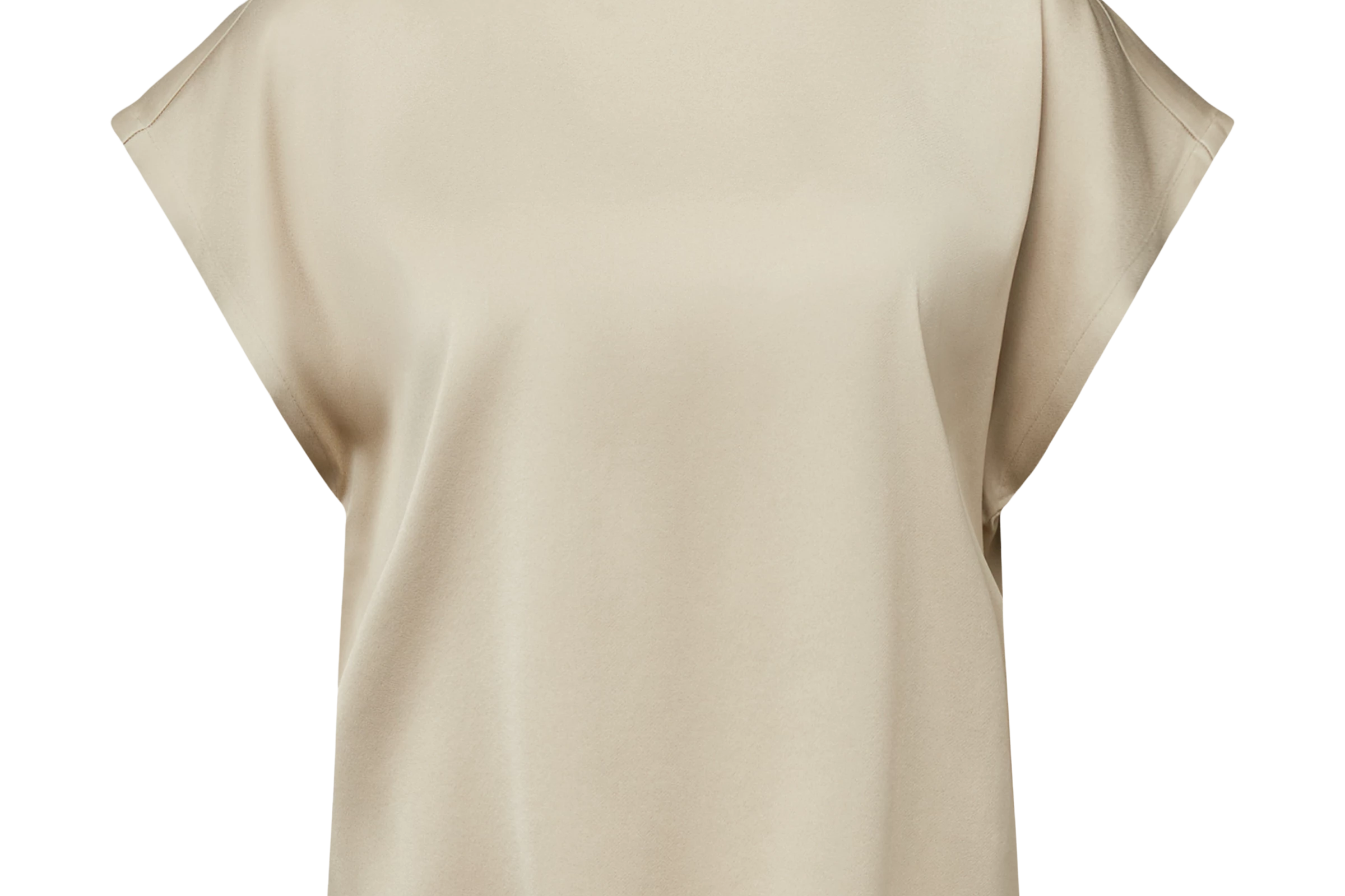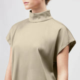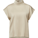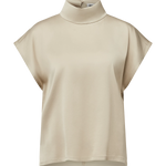 ALARIA_1 is een overhemdblouse met een relaxte pasvorm en een H-lijn. De blouse heeft korte, oversized mouwen, een opstaande kraag en een knoopsluiting. Gemaakt van een hoogwaardige en soepelvallende satijnstof.