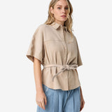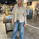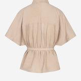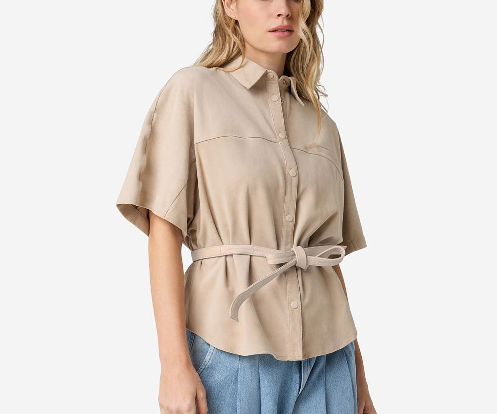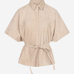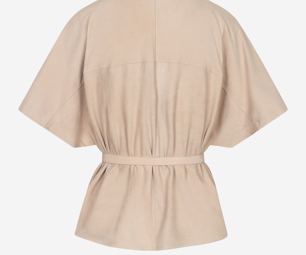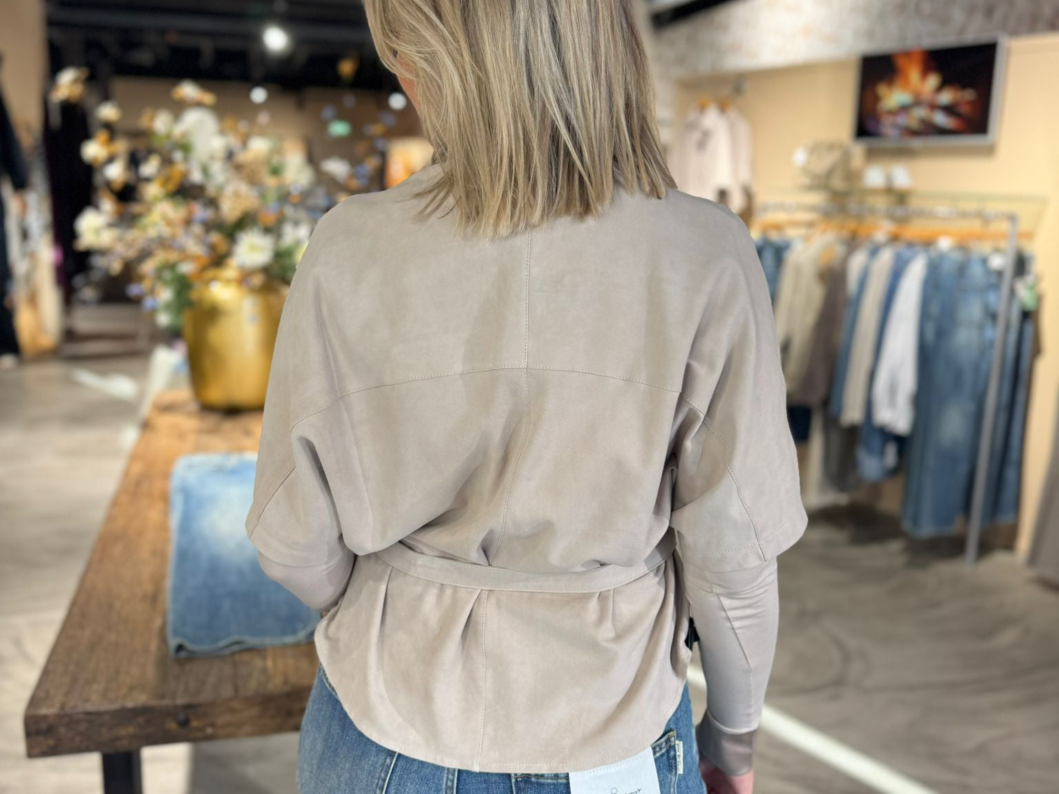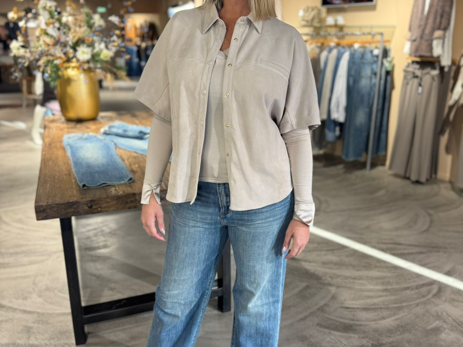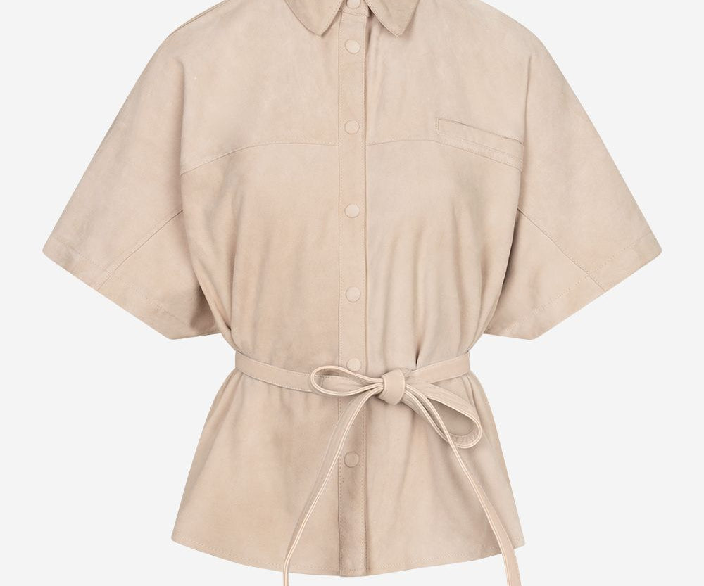 Prachtige echte suede blouse die je zowel dicht (getailleerd) of mooi open kunt dragen. Een ware upgrade voor je garderobe.