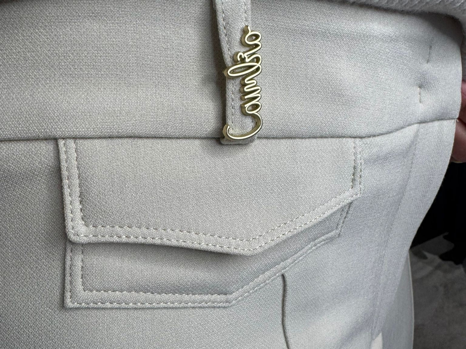 Broek valt iets ruim in de taille. Kim draagt op de foto broek maat 40.