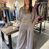 Gave broek in wijd model en hele fijne kwaliteit. De bandplooi maken de broek extra trendy en de kwaliteit heeft iets weg van luxe loungewear.