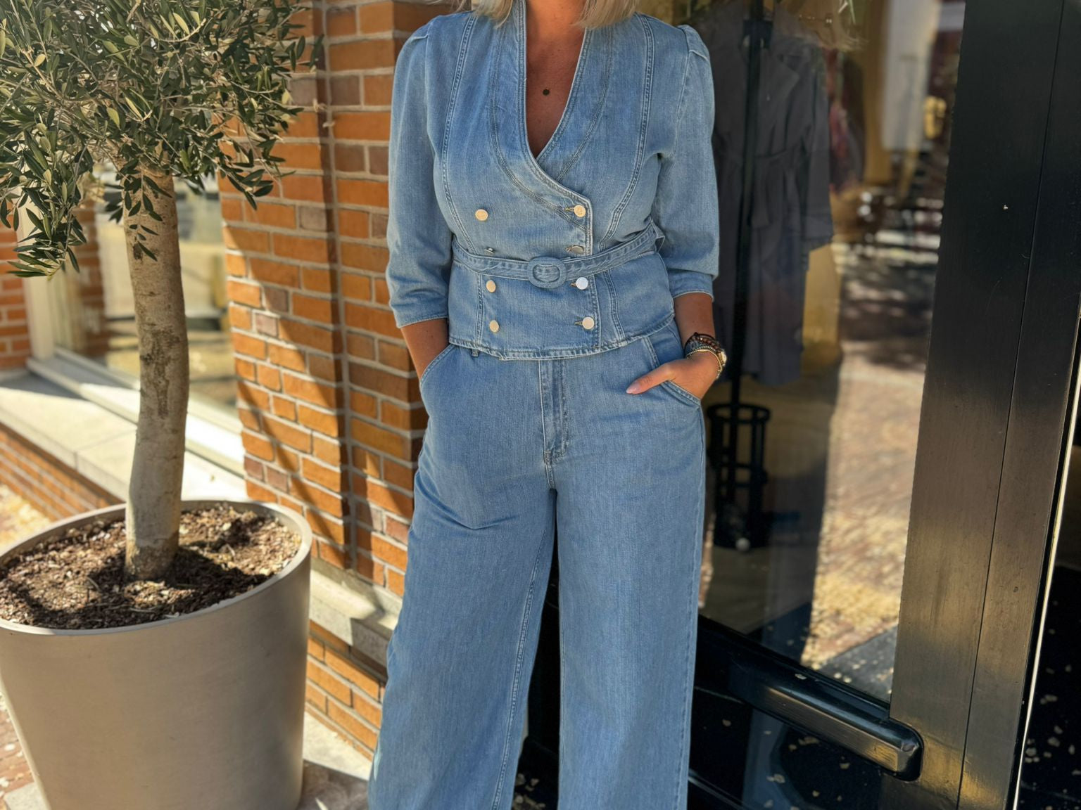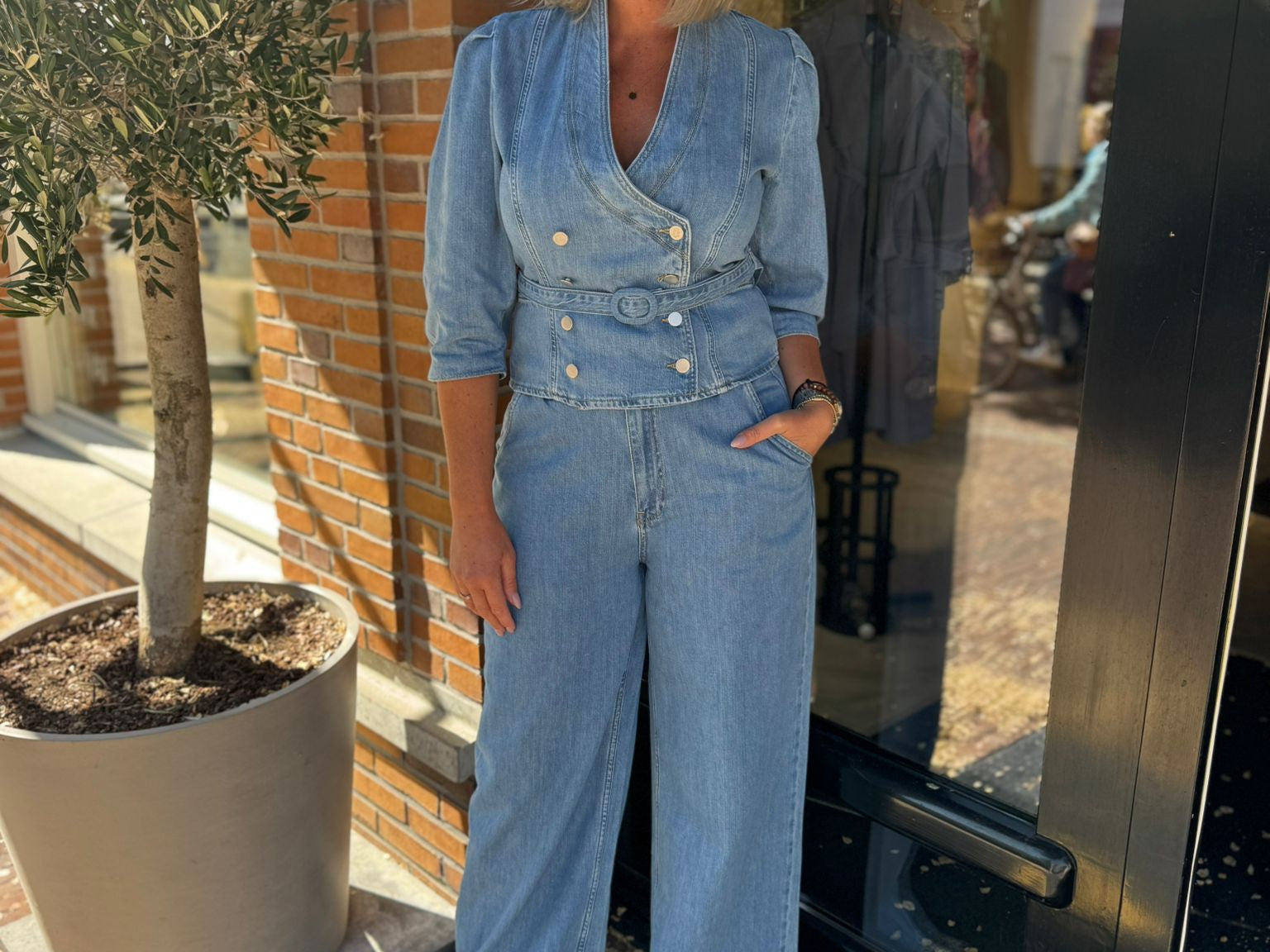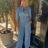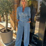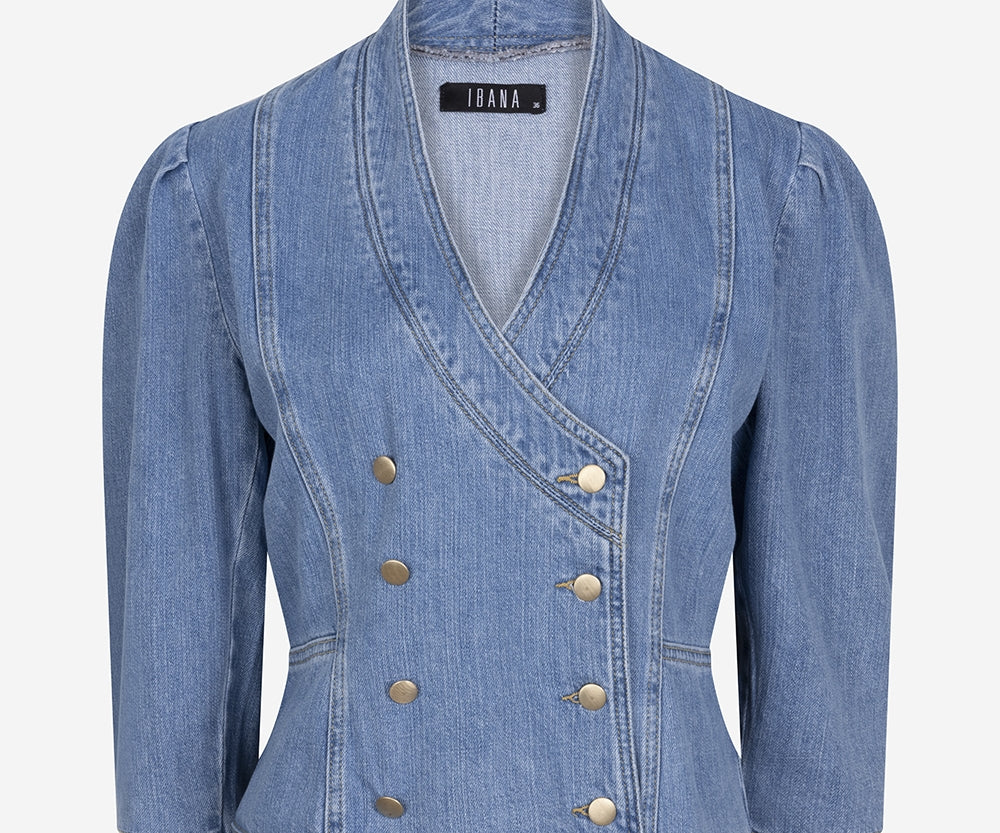 Maak kennis met de Tayra Top in een lichtblauwe spijkerstof. De top heeft een regular fit en is gemaakt van 100% katoen. De top bevat gouden knopen aan de voorkant en daarnaast heeft de Tayra driekwart pofmouwen. Dit geeft de top een vrouwelijke uitstraling. Combineer de top met de bijpassende Pellina Pants. Wil jij gaan voor een casual look? Stijl de outfit dan af met sneakers. En met een paar hakken creëer je in no-time een zakelijkere look.