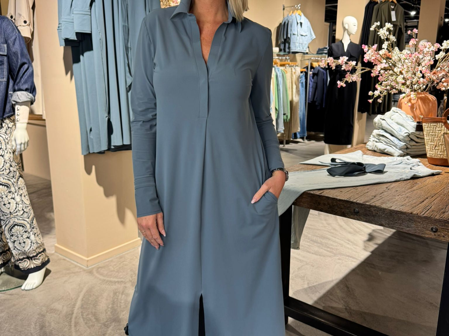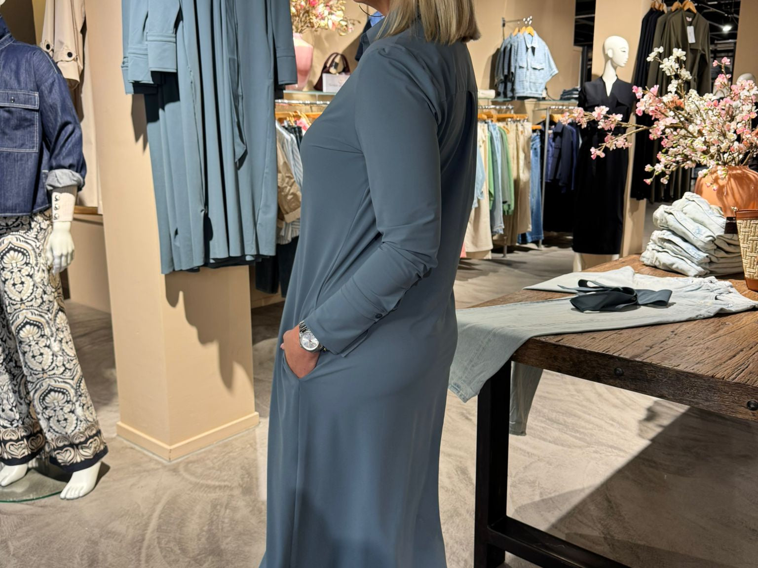 BESTSELLER! Deze mooie lange traveljurk is terug in een nieuwe waanzinnige kleur! Kim is 1,74 en draagt hier maat S.