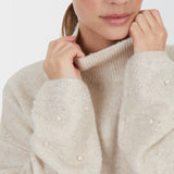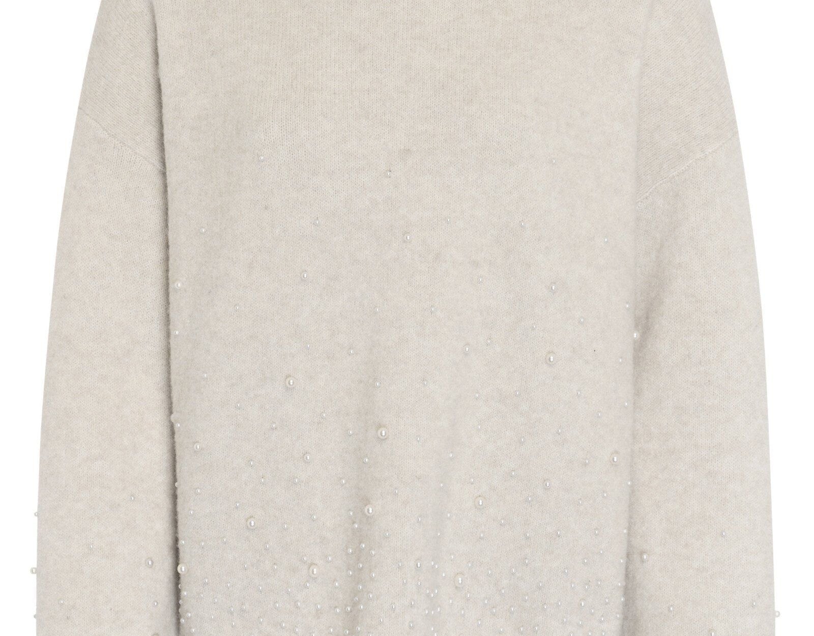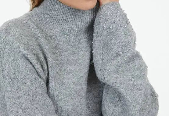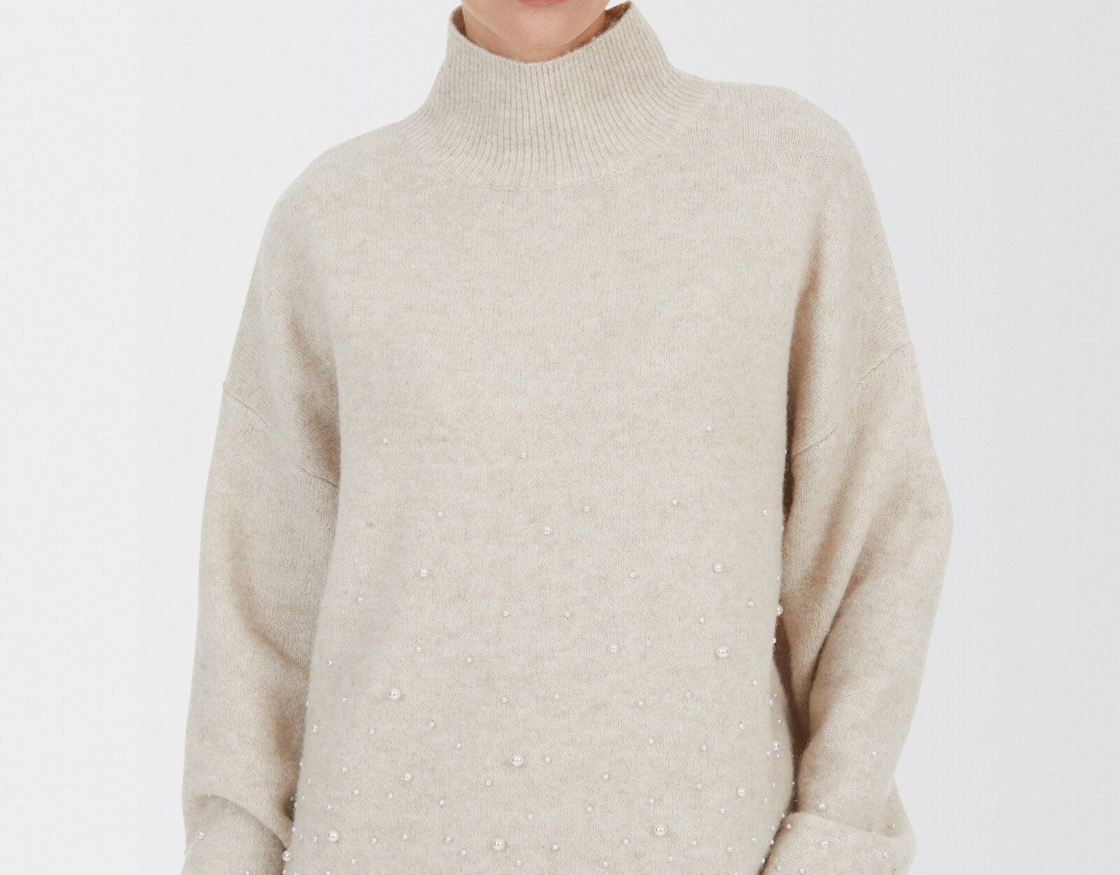 Deze trui, gemaakt van een zachte wol-alpacamix, zorgt voor elegante accenten met glinsterende parelversieringen. De opstaande kraag geeft het ontwerp een stijlvolle touch, terwijl de geribbelde manchetten zorgen voor een perfecte pasvorm. Ideaal voor een modieuze én stijlvolle look.