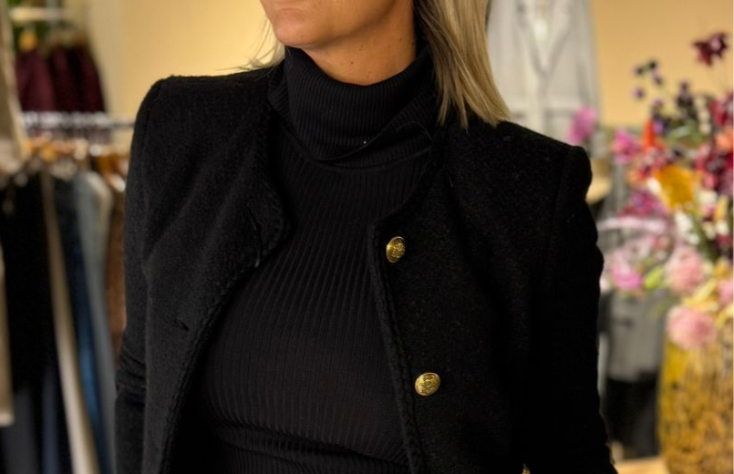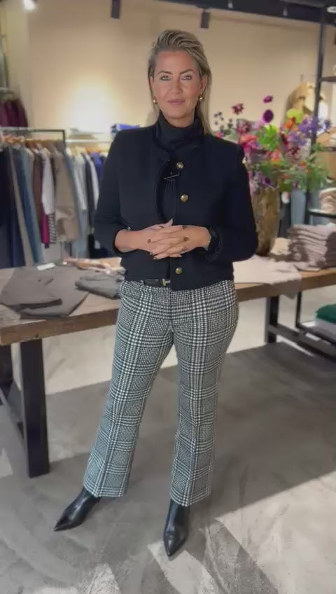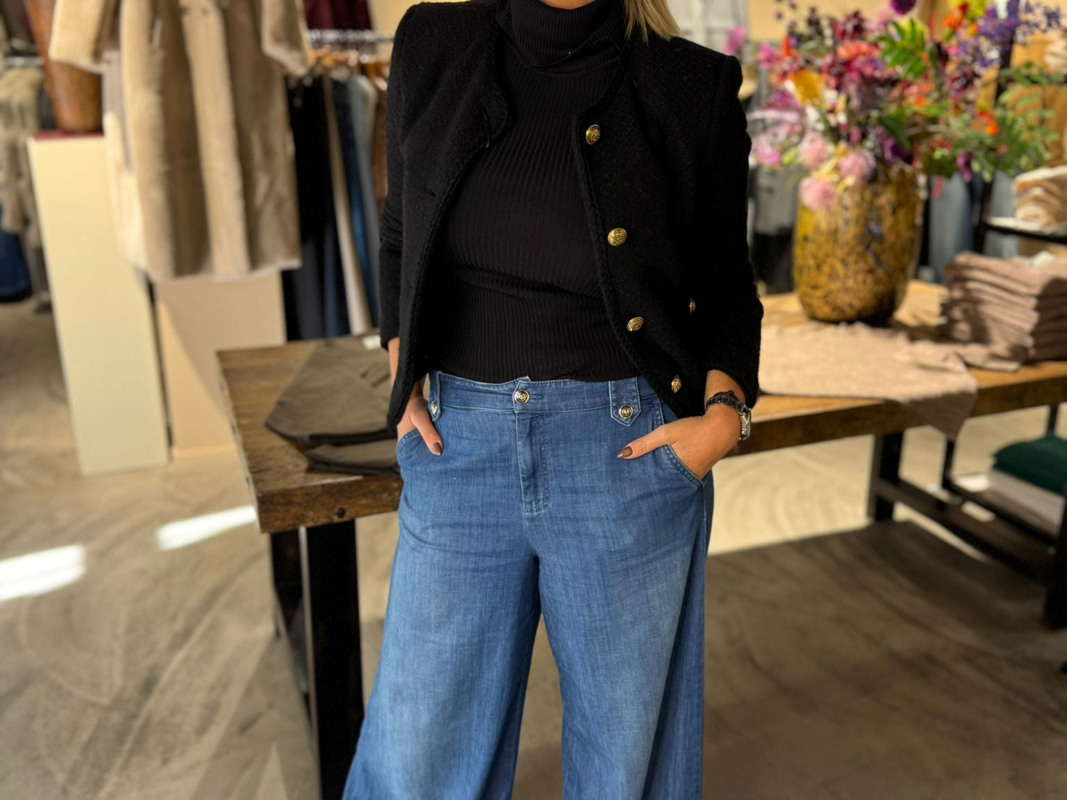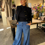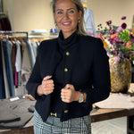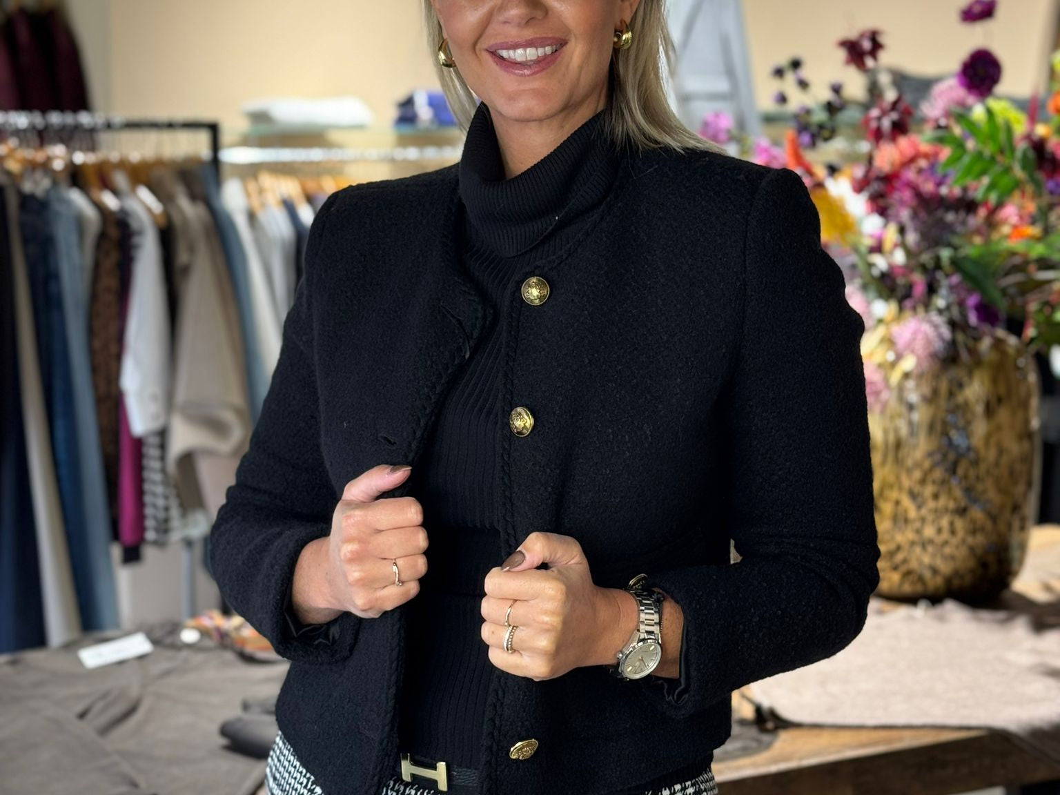 Wow! Gaaf kort bouclé jasje in 'Chanel' stijl. Zeer geschikt voor op een wideleg denim met hoge taille!