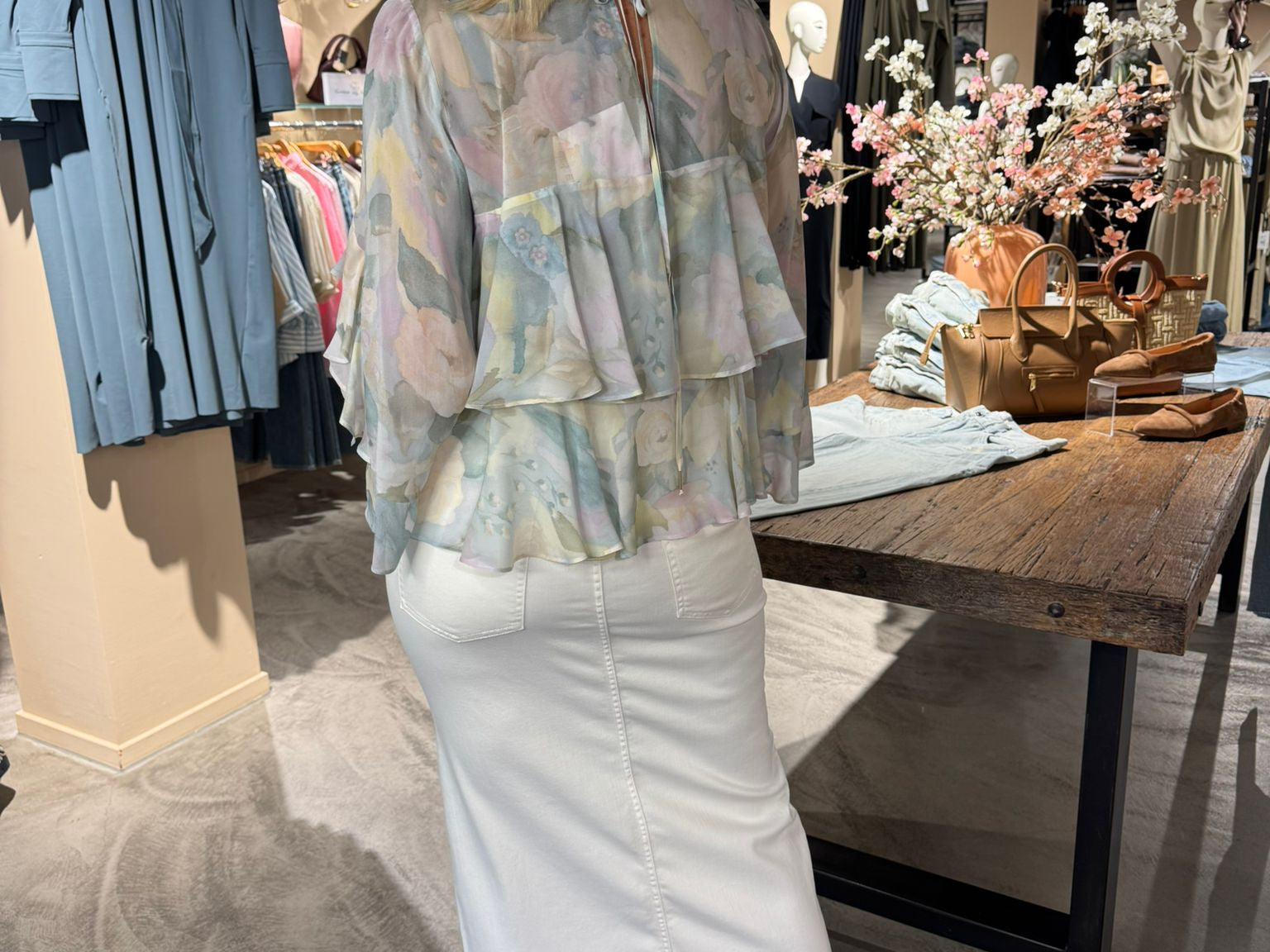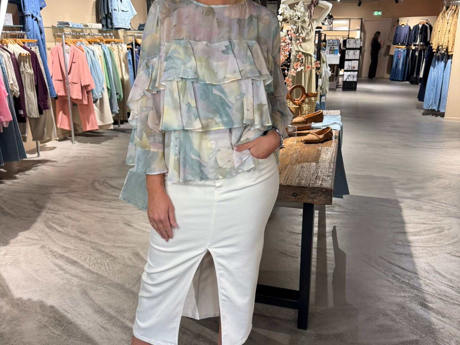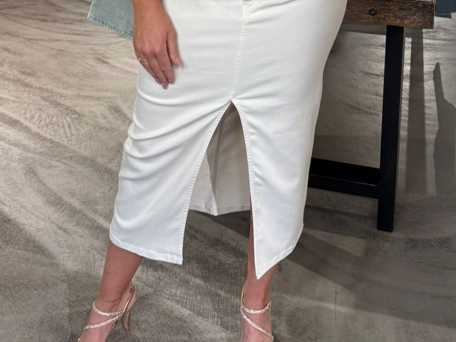 Mooie denimrok in koker model. De rok tekent niet en zit top door de hoeveelheid stretch. Rok valt iets ruim.