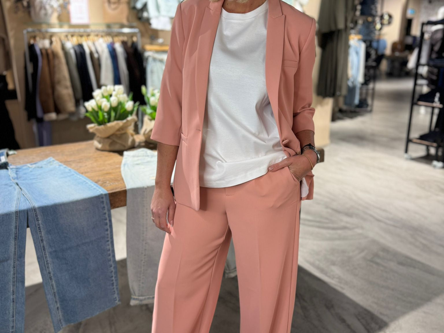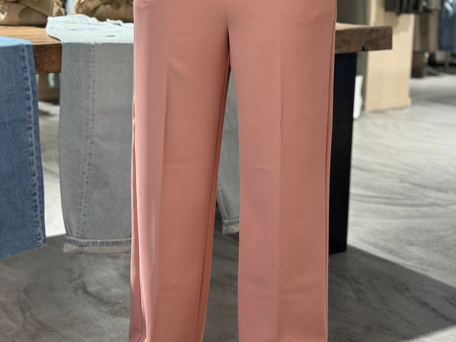 Prachtige pantalon in een waanzinnig mooie peach kleur. Combineer met de bijpassende blazer Junie Miley.