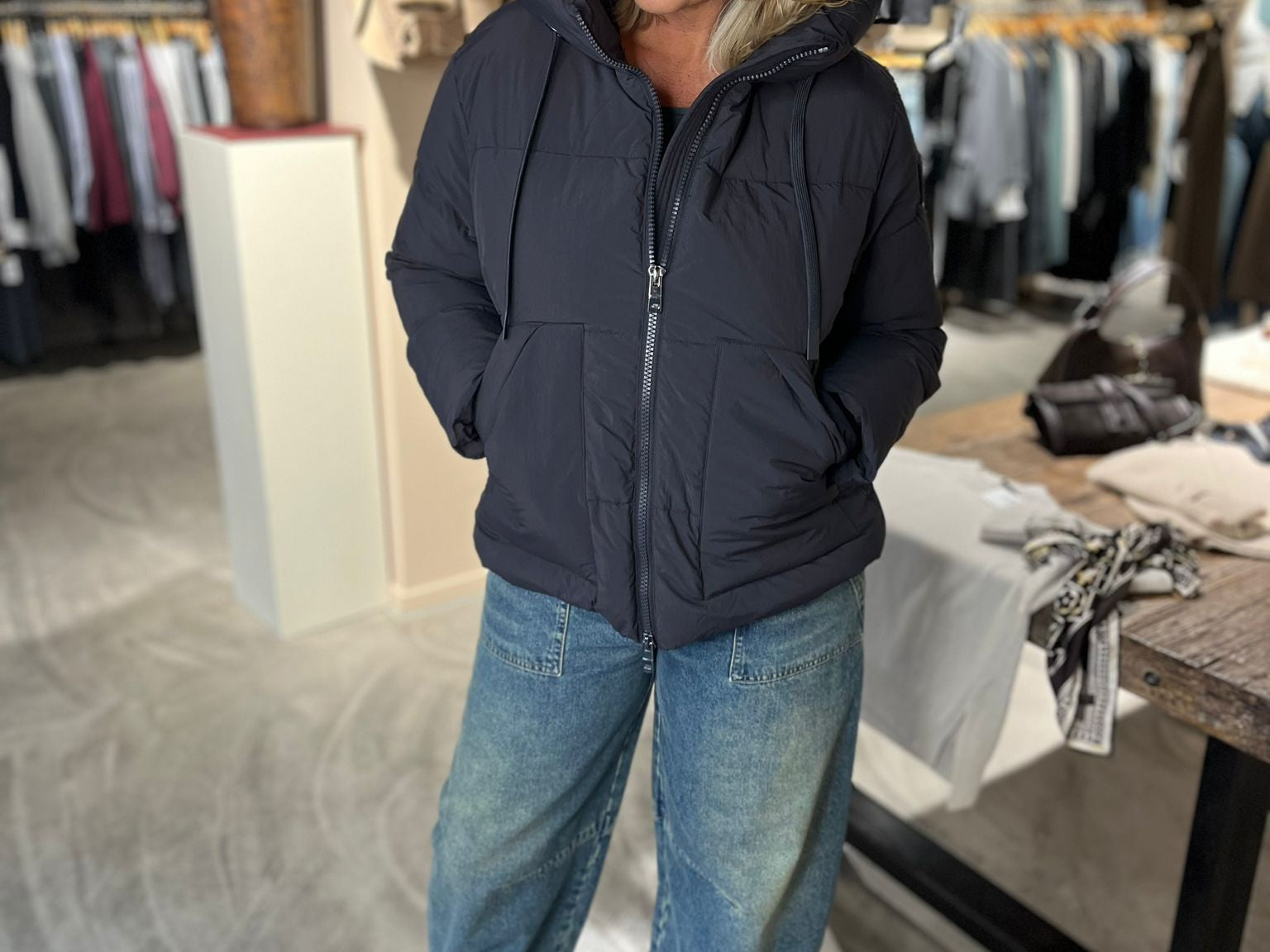 Blijf stijlvol warm met dit gewatteerde jack, gemaakt met ETHERMALOFT®, een geavanceerde warmtevezeltechnologie die energie, zoals zonlicht, absorbeert en omzet voor optimale isolatie. Met een praktische capuchon, ritssluiting en functionele zakken combineert het jack warmte met dagelijks gemak. Elastische manchetten bieden extra comfort en bescherming, waardoor het de perfecte keuze is voor koude dagen.