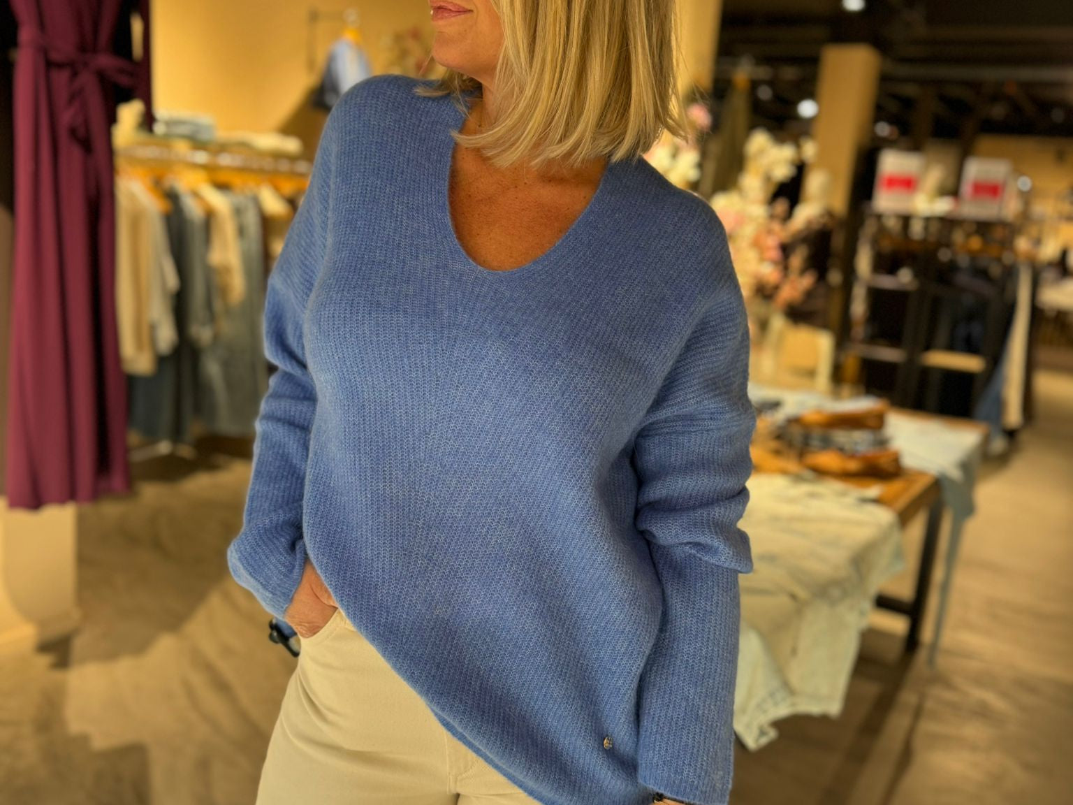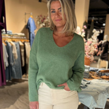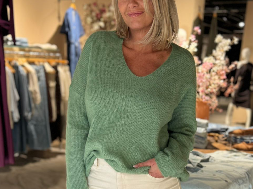 Heerlijk trui met V hals die iets ruim vallen. Nu in frisse nieuwe kleuren!