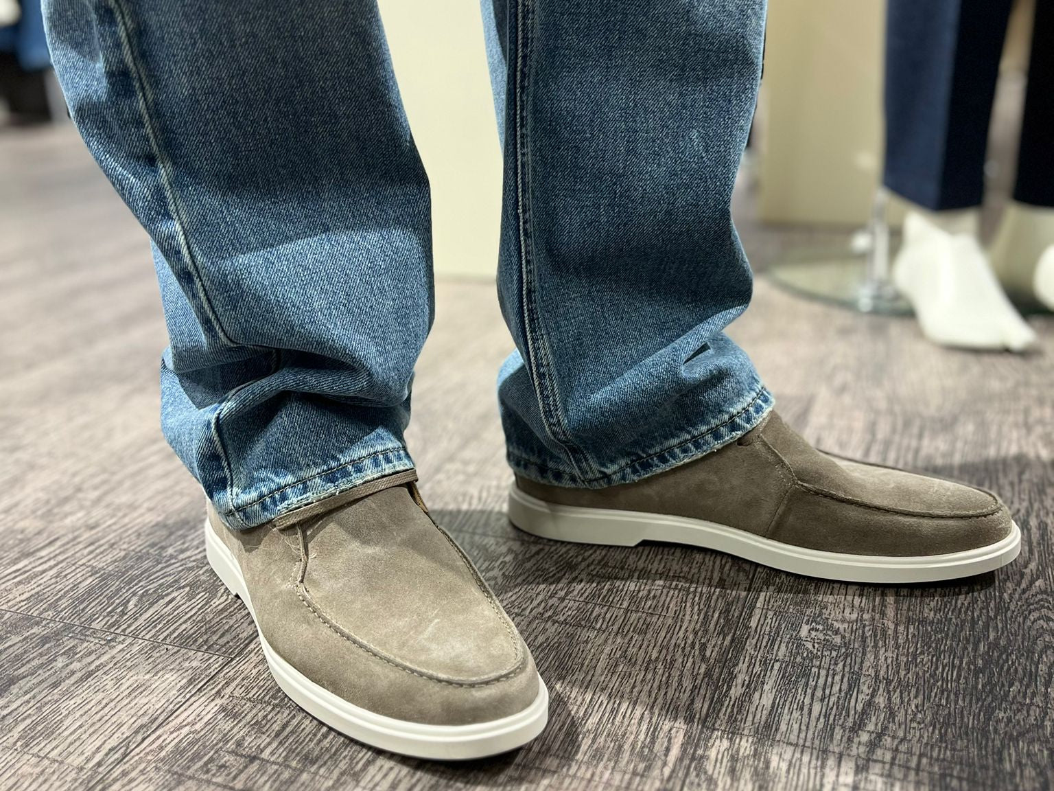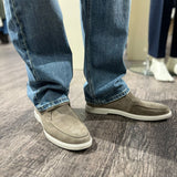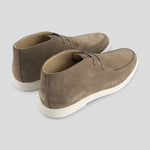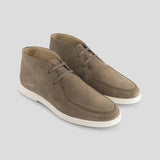 Nette halfhoge veterschoen uitgevoerd in een mooie, zachte kwaliteit suede in de kleur taupe. Voorzien van een comfortabele, lichtbeige zool voor een klassieke look. Combineer eenvoudig met een mooie chino of jeans voor een casual chic look.