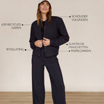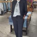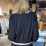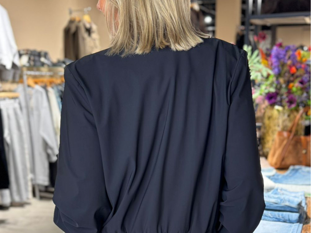 Het Benja bomber jacket van Studio Anneloes tilt jouw look moeiteloos naar een hoger niveau. Dit zwarte jasje heeft een stoere basis met vrouwelijke details. De schoudervulling en pasvorm geven structuur, terwijl de elastische boorden zorgen voor een comfortabele, casual feel.