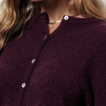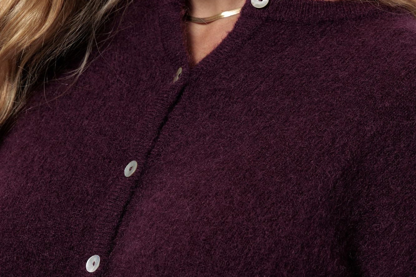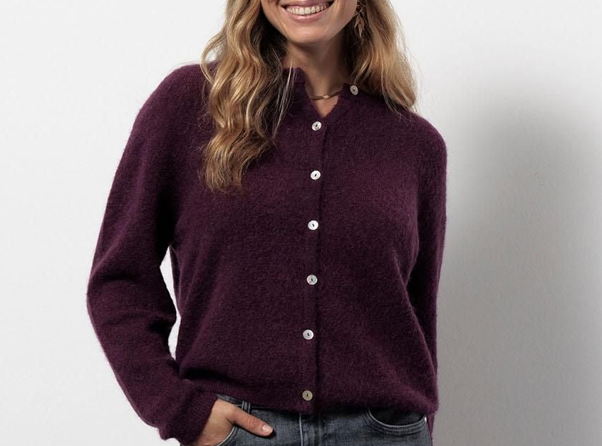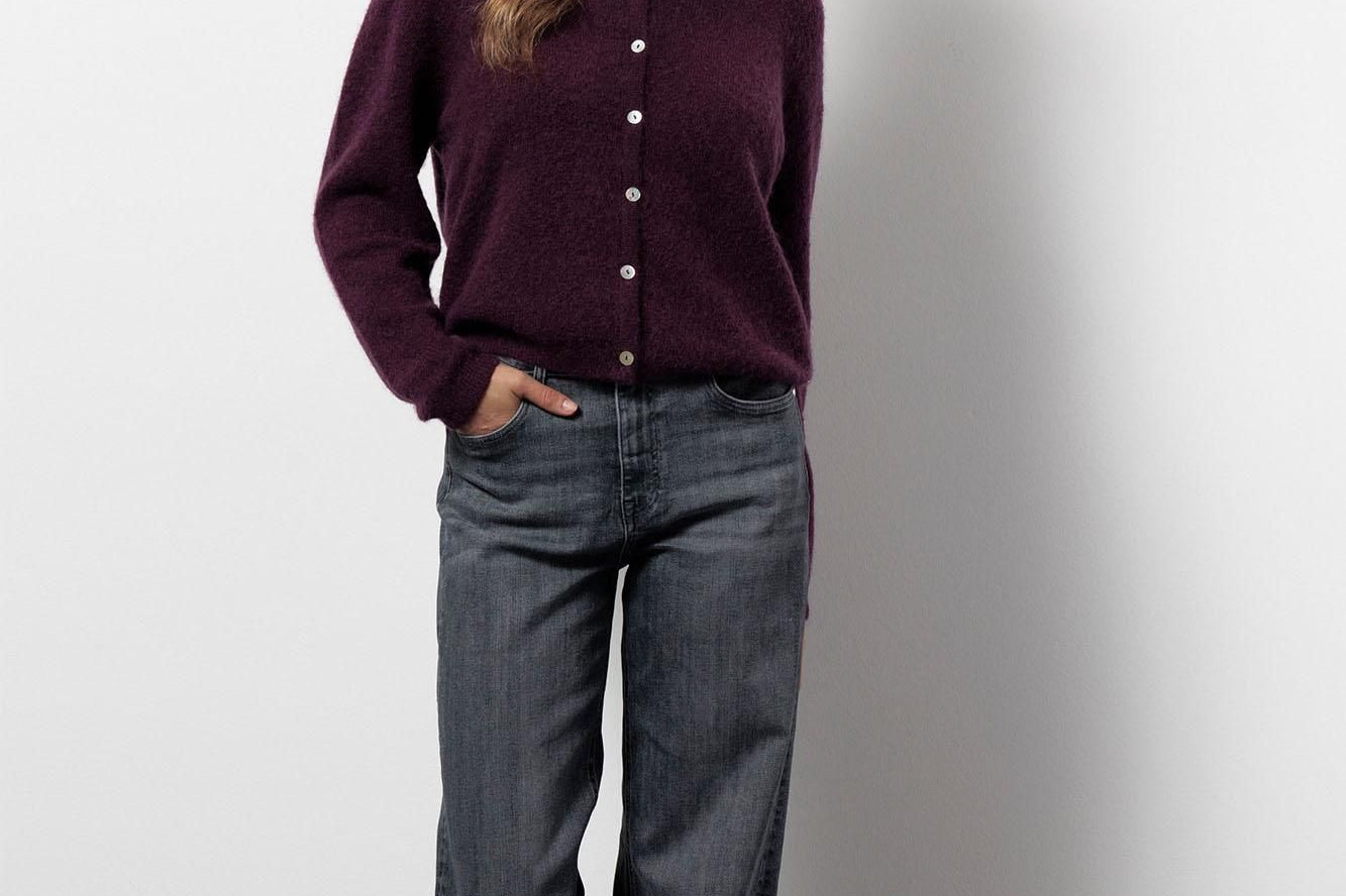 De Bibi mohair cardigan in de kleur Blackberry is een elegant vest met een moderne twist. De diepe paarsrode tint voegt warmte en karakter toe aan je outfit, terwijl de zachte wol- en mohair mix zorgt voor een luxe uitstraling. Dankzij de regular fit draagt het vest comfortabel en valt het losjes om het lichaam.