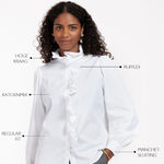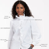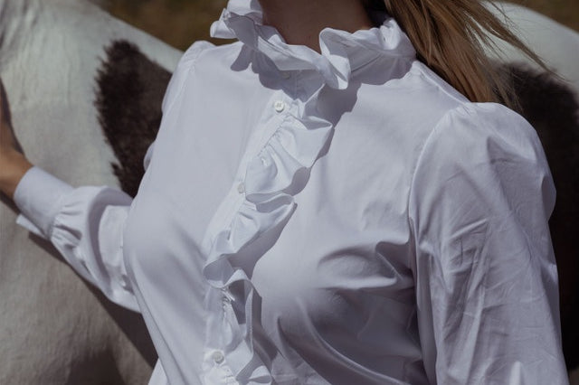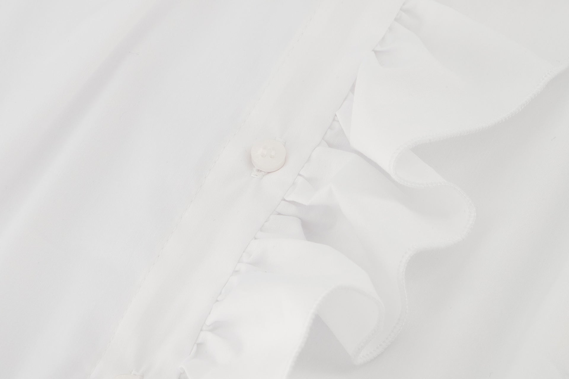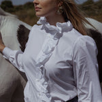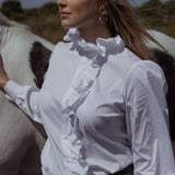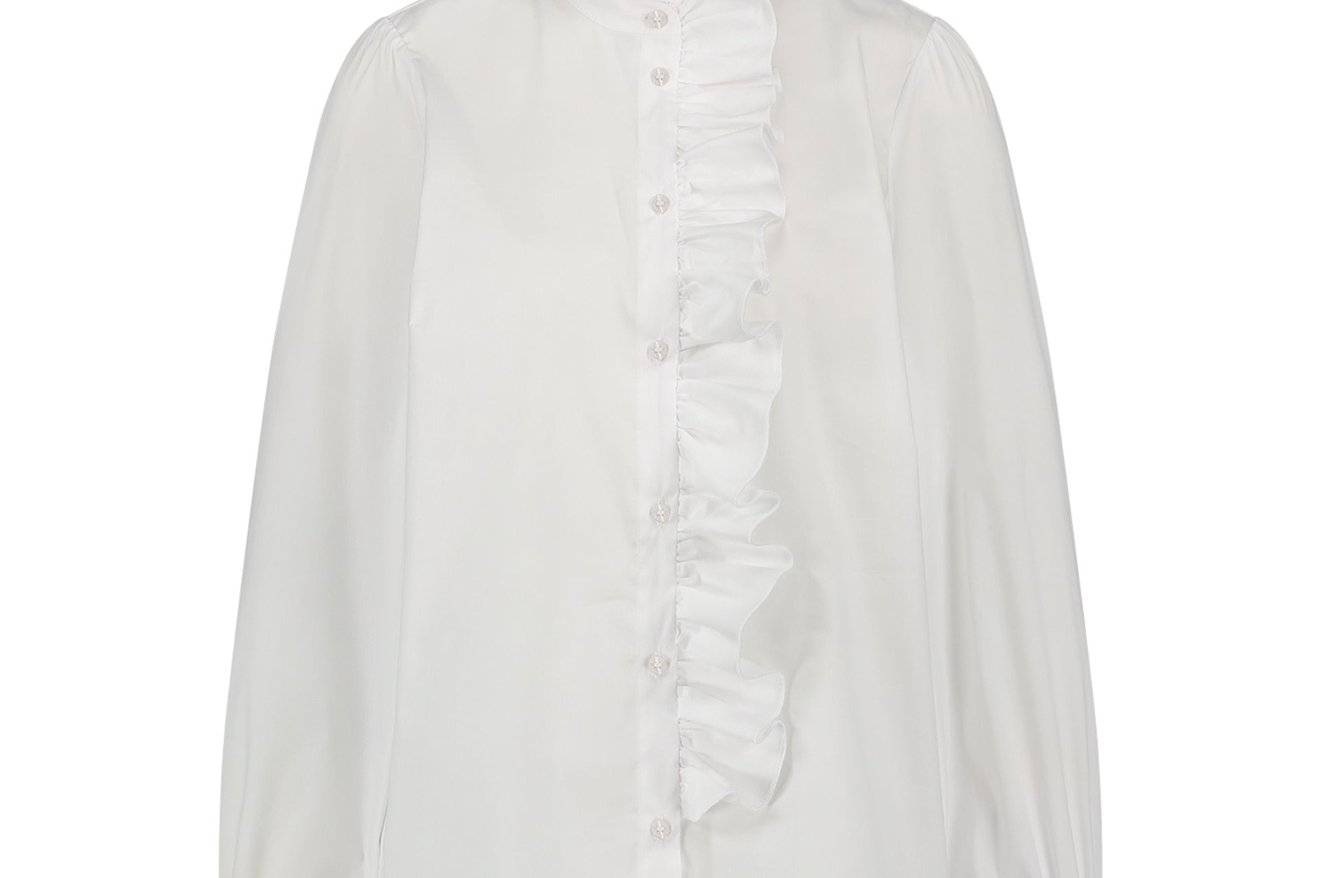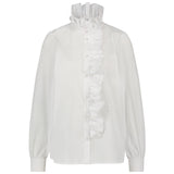 De Idette poplin blouse van Studio Anneloes is een verfijnde klassieker met een moderne twist. Deze blouse in tijdloos wit heeft een hoge kraag en elegante ruffles langs de knopenlijst, wat zorgt voor een romantische touch. De katoenen poplin mix biedt ultiem draagcomfort en een luxe uitstraling, perfect voor elke gelegenheid waar je zowel stijlvol als comfortabel voor de dag wilt komen.