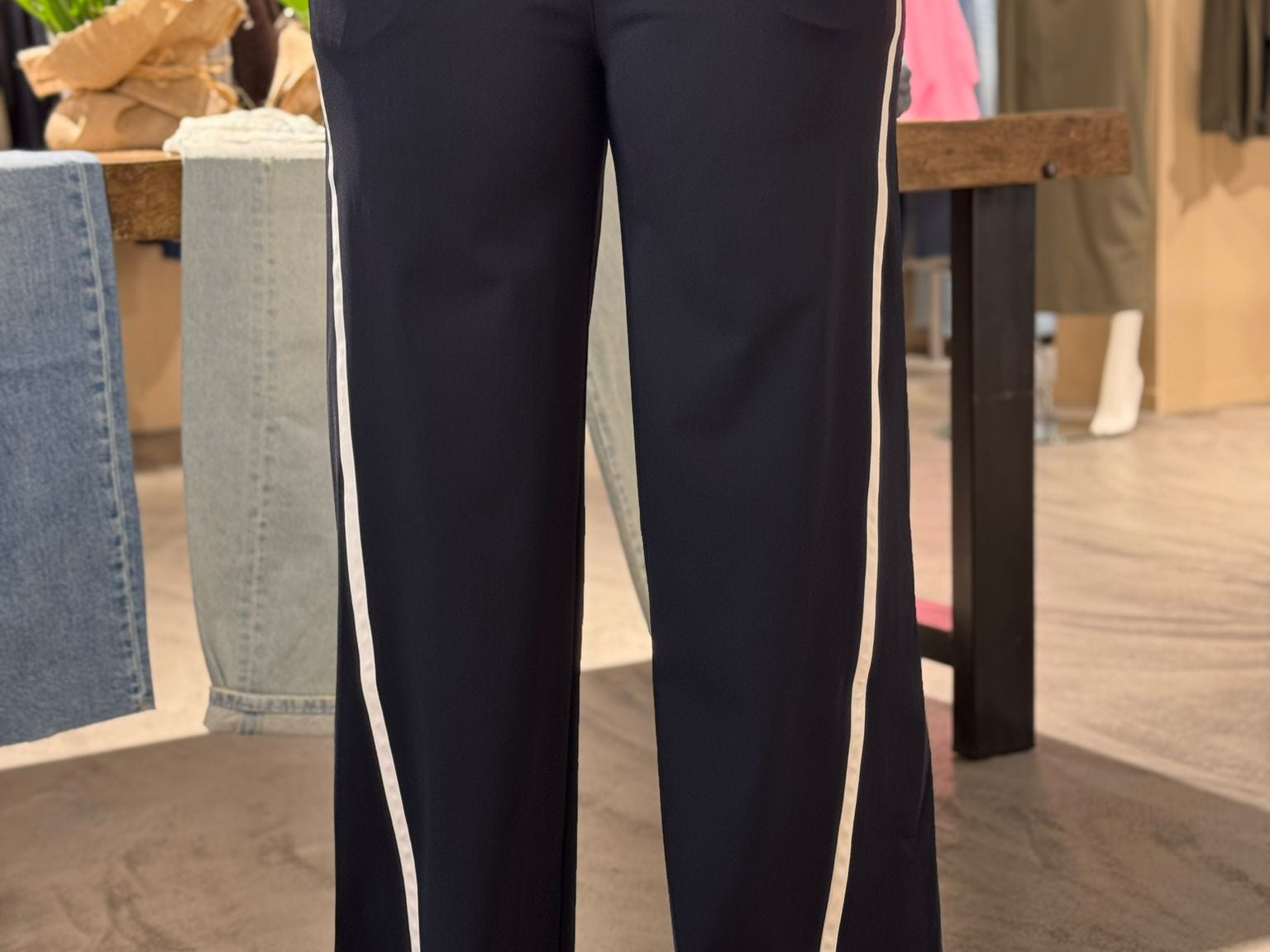 De Levie trousers van Studio Anneloes is een sportieve variant op de klassieke wide leg broek. In de kleur Dark Blue en met contrasterende strepen langs de zijkanten geeft dit item je outfit een moderne en dynamische uitstraling. Comfort en flair komen perfect samen in dit eigentijdse ontwerp.