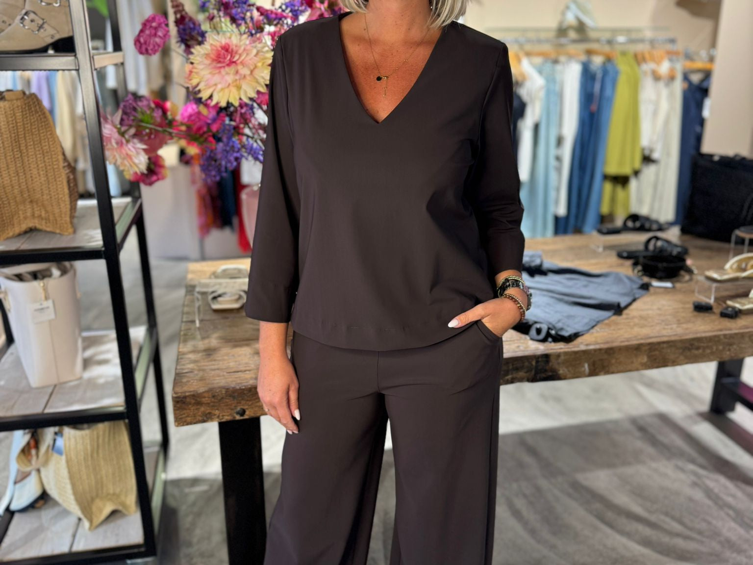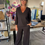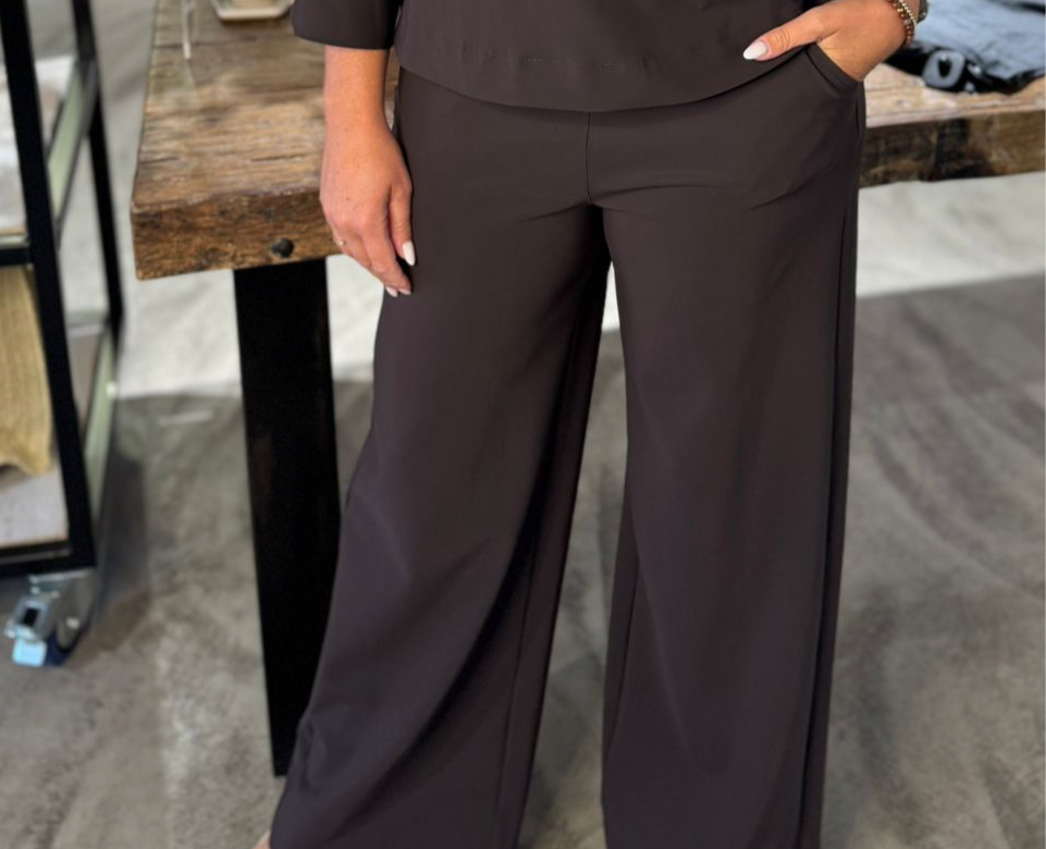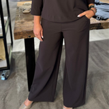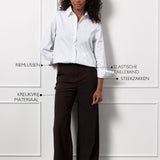 De Lexie bonded trousers van Studio Anneloes is krachtig, comfortabel en helemaal on-trend. Dankzij de wijde pijpen, Bonded Travelstof en diepe kleur Espresso is dit een broek met karakter. De perfecte keuze voor wie stijl en draagcomfort wilt combineren.