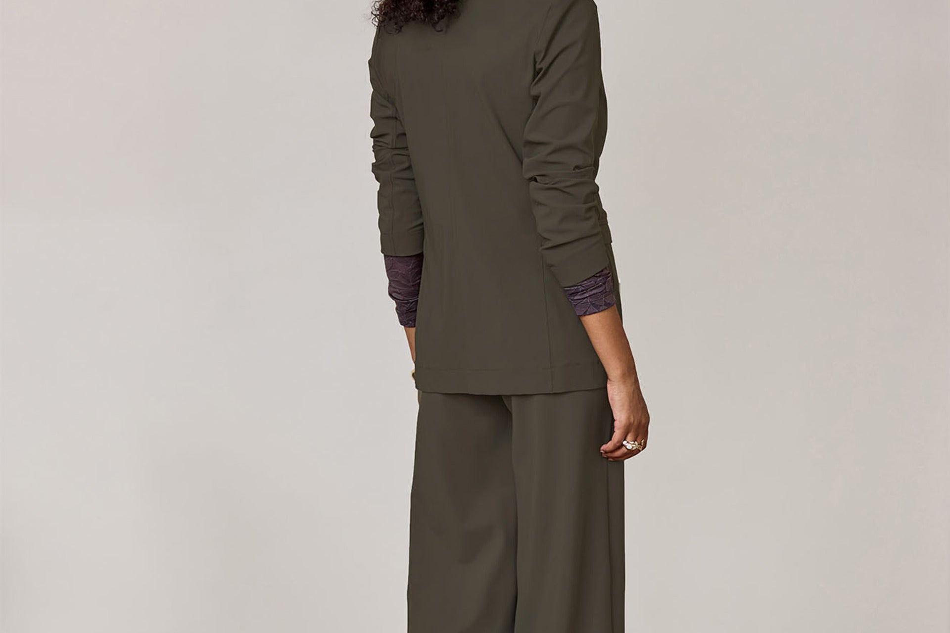 De Lexie bonded trousers van Studio Anneloes is krachtig, comfortabel en helemaal van nu. Dankzij de wijde pijpen, Bonded Travelstof en diepe groentint New Army is dit een broek met karakter. Perfect voor wie stijl en draagcomfort wil combineren.