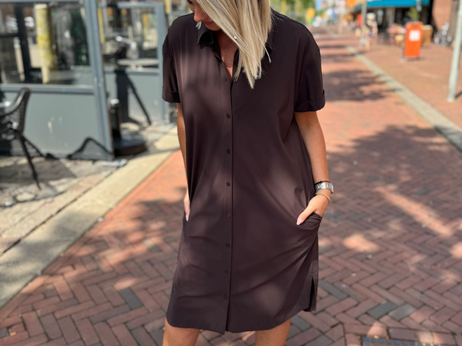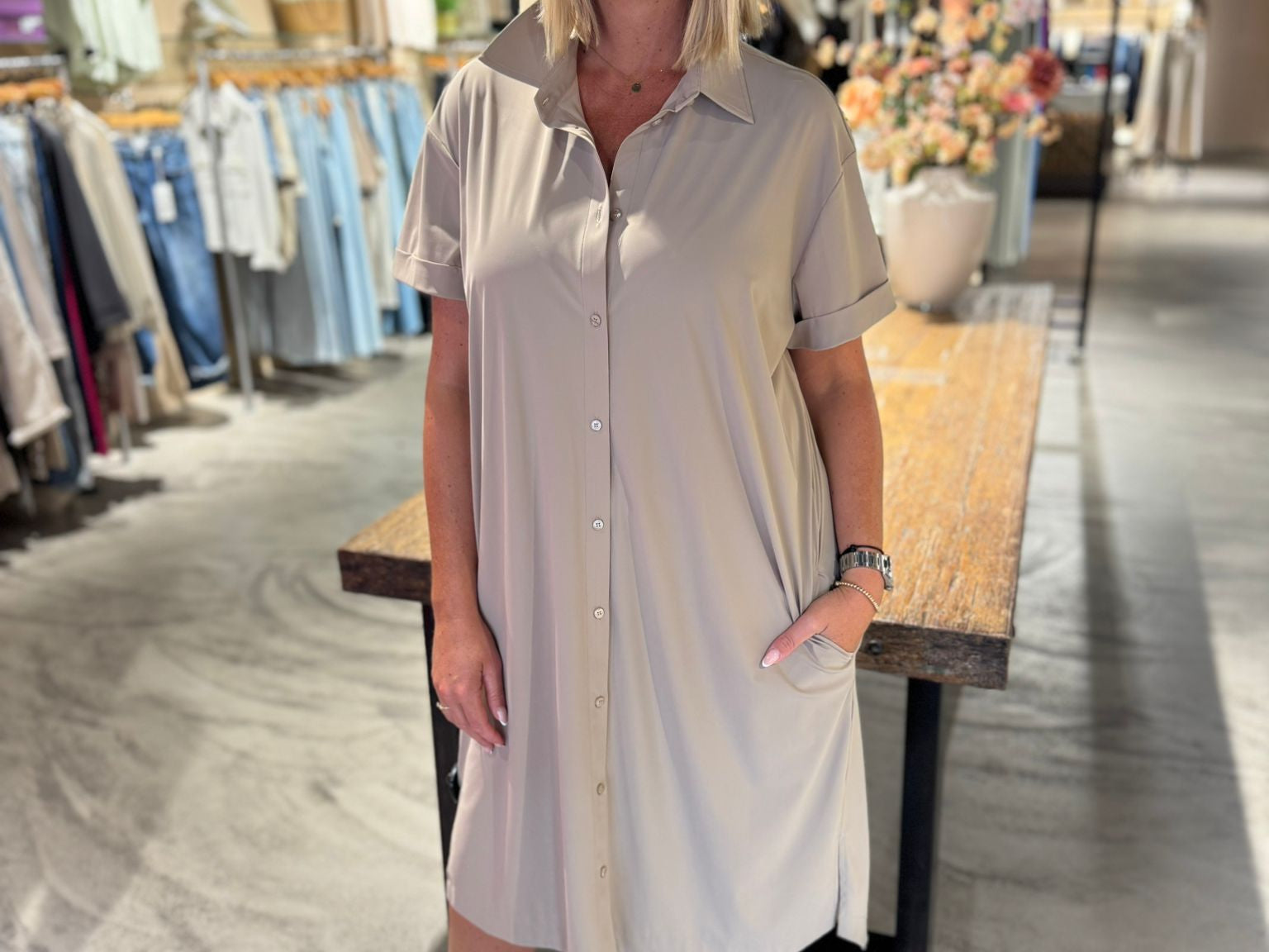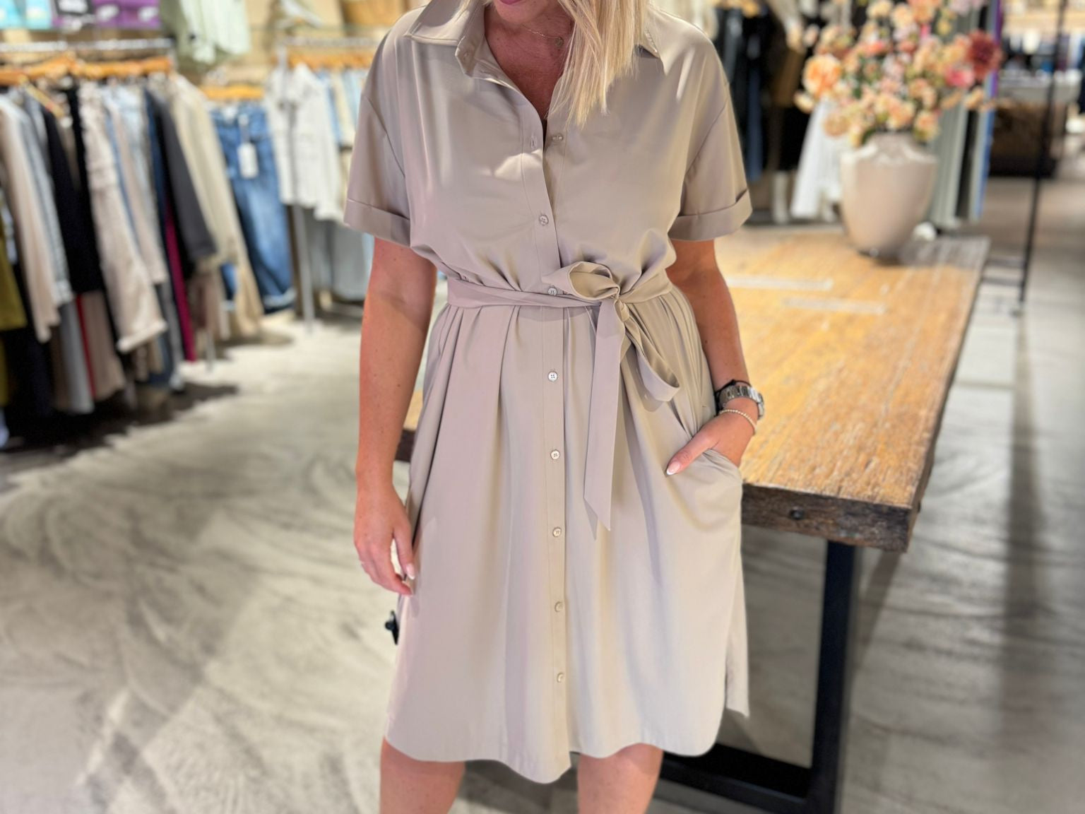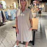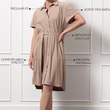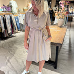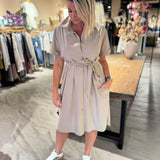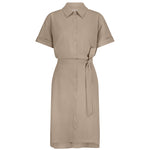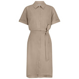 De Louna blouse dress van Studio Anneloes straalt lichtheid en klasse uit. De zachte kleur Latte, het bijpassende ceintuur en de klassieke details maken deze jurk ideaal voor zonnige dagen. De kreukvrije Medium Travelstof zorgt voor comfort en een verzorgde look de hele dag door.