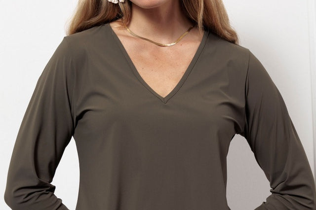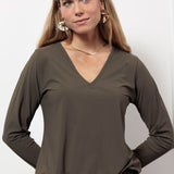 Het Vicky long sleeve shirt van Studio Anneloes is een tijdloze basic met een perfecte pasvorm. De regular maar losvallende fit, V-hals en bloezende voorkant zorgen voor een vrouwelijke look met een relaxte twist. De kleur New Army geeft dit shirt een stoere, stijlvolle uitstraling die in geen enkele garderobe mag ontbreken.