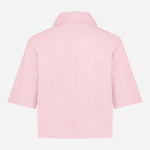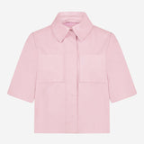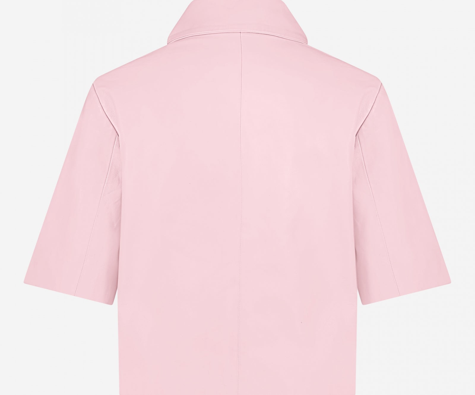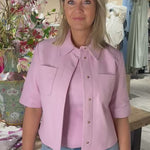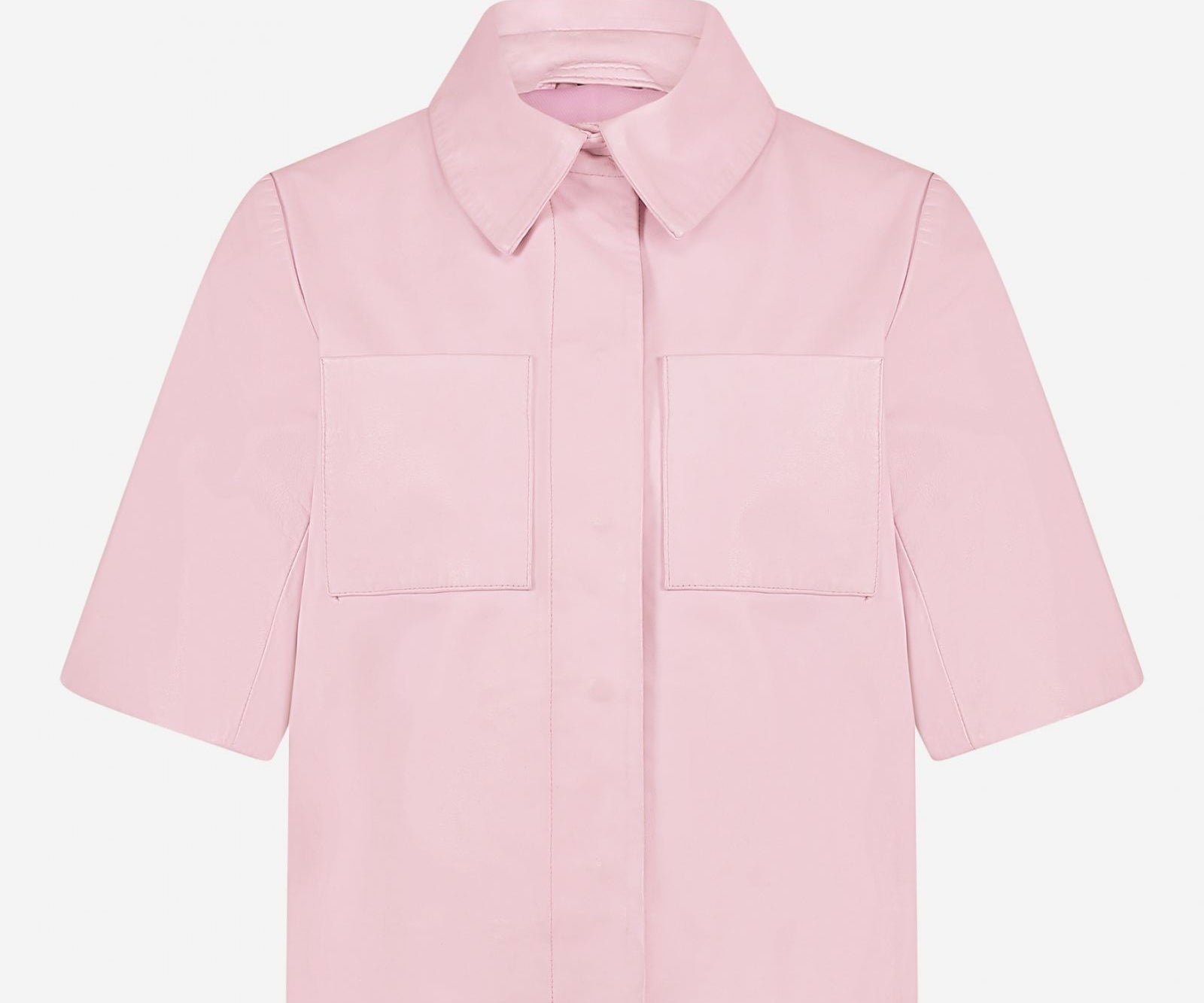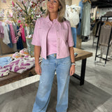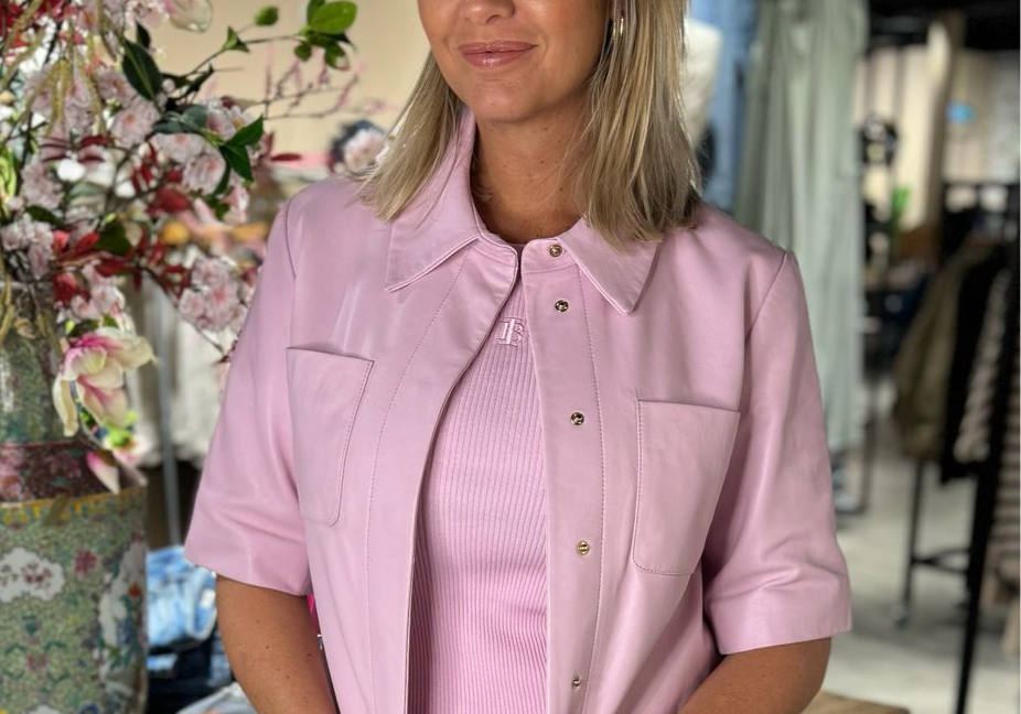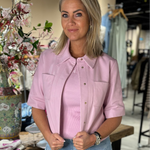 Dit is de Treabhar Top in de kleur Pinka. Deze top heeft een boxy fit met korte mouw, twee borstzakken en een blinde sluiting met drukknopen. De top is gemaakt van hoogwaardig non-stretch kwaliteitsleer.